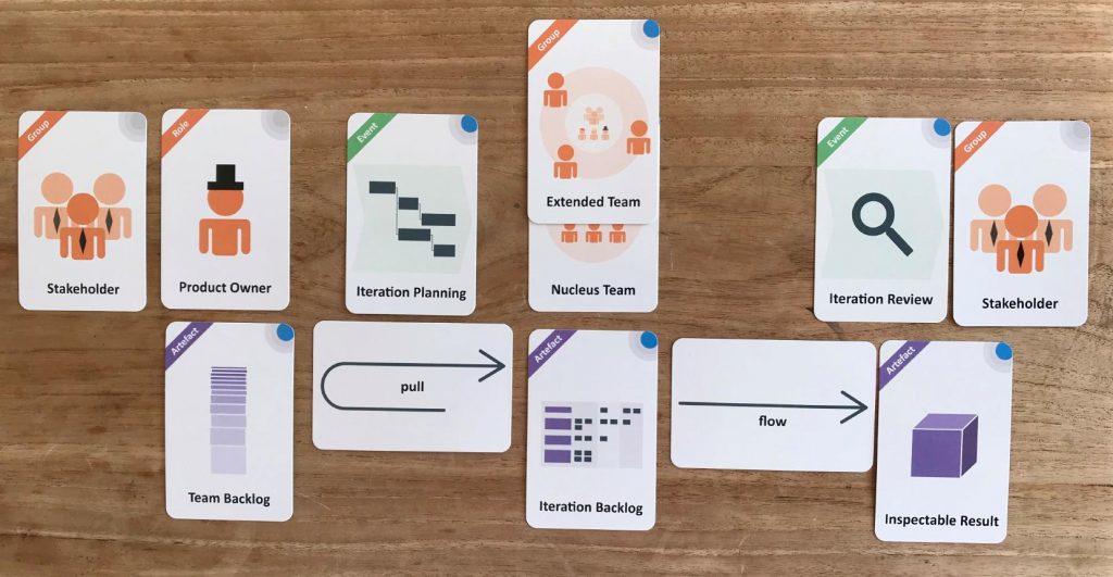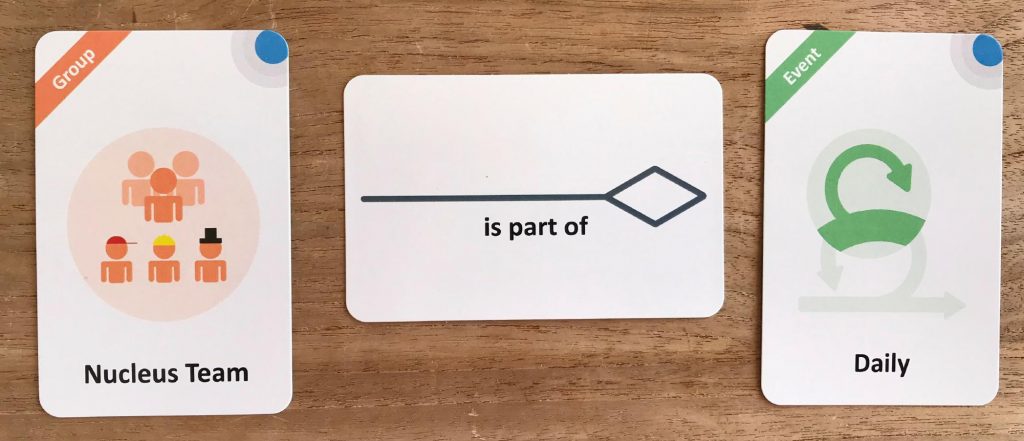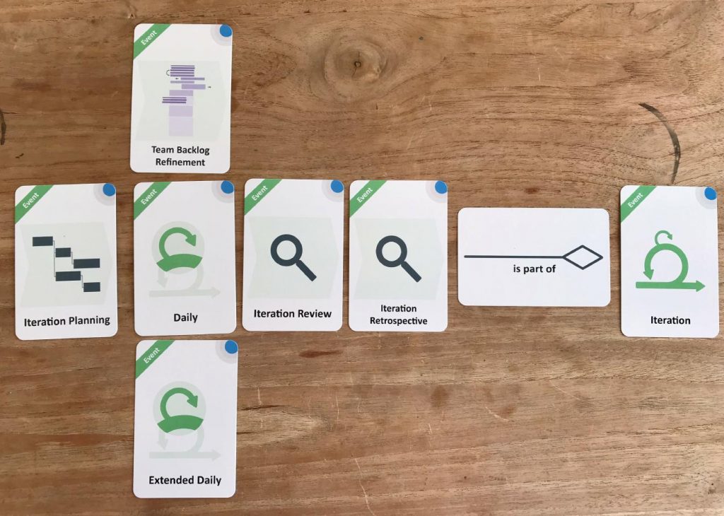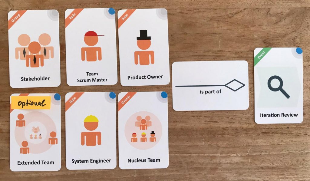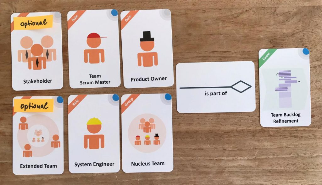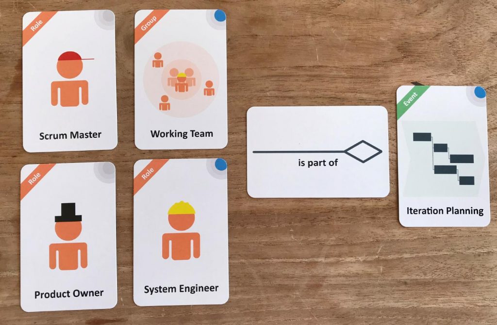 Das P4-Modelling-Game eignet sich hervorragend in Schulungen und zu Ausbildung, um die Begriffe klarer zu machen. Dazu bekommt ein Teilnehmer oder eine Gruppe eine Frage, die dann mit einem Kartenmodell zu beantworten ist.